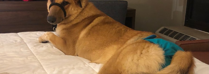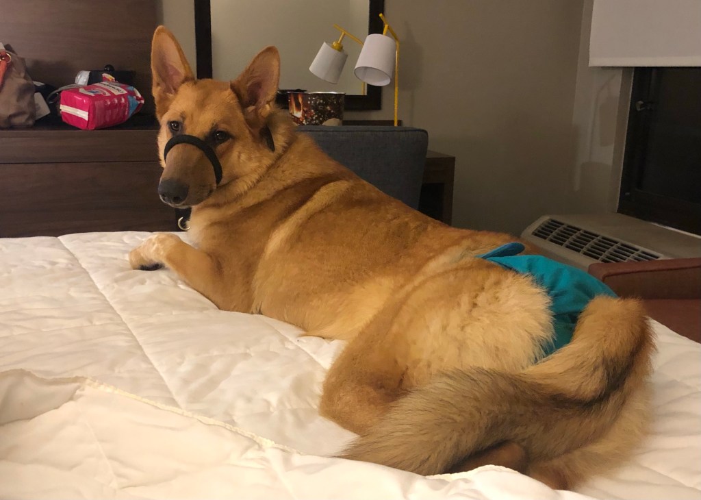 It’s a bit awkward taking my service-dog-in-training to public places while wearing doggy underwear. A normal dog being in a store draws a lot of attention. A dog being in a store wearing doggie underwear draws ALL the attention. Most of the time it’s because people are wondering why a service dog isn’t potty trained and I find myself having to defend her honor. So once I got her heat pants on and finally picked Doodles (Nikolai) up from school, the three of us piled out of the car and made our way into Dollar General. Every eye turned to look at us from the moment we walked in because… heat pants.